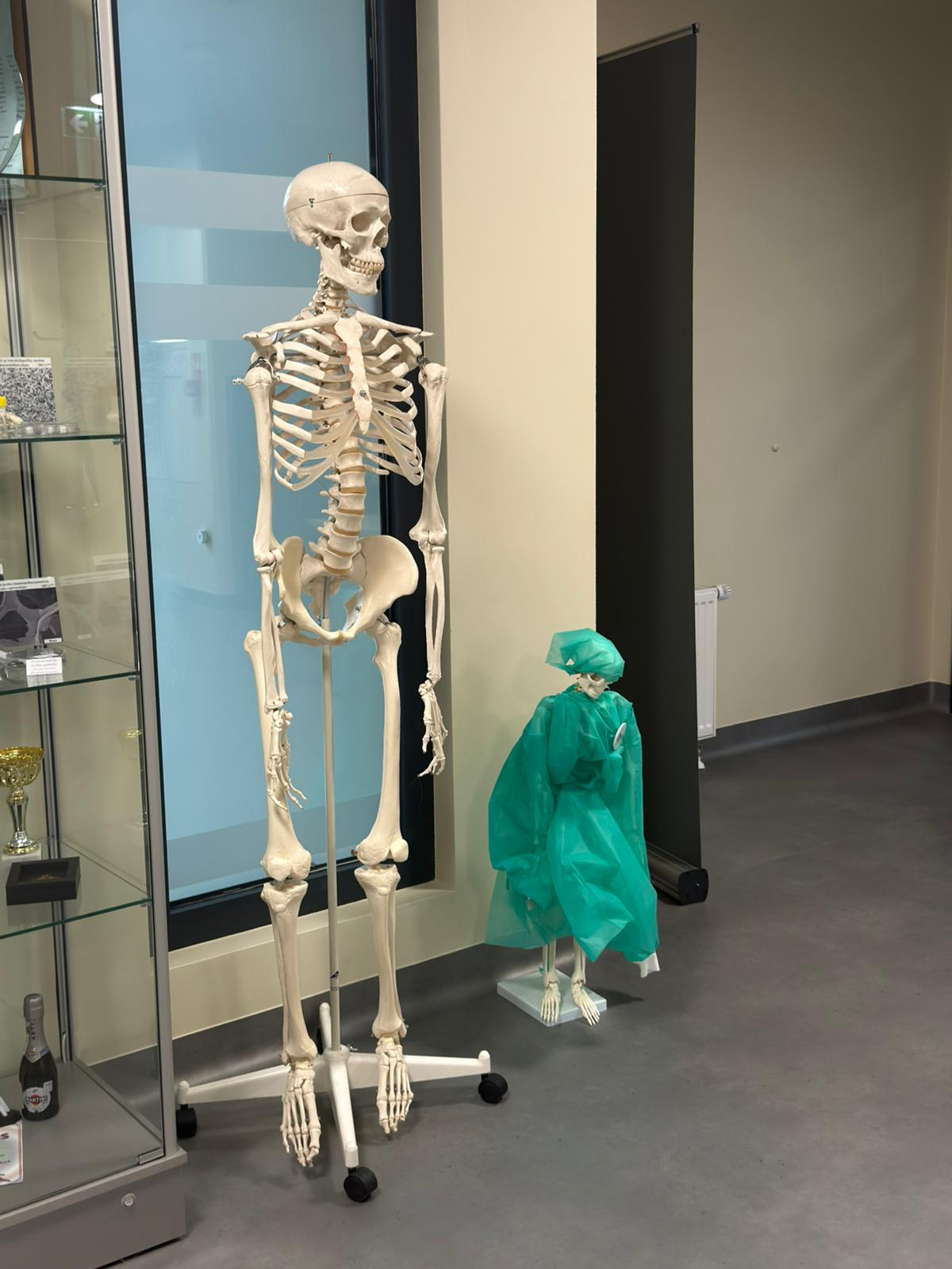 For all the sophisticated methodology, a tour of BBCE wouldn’t be complete without soaking in a bit of the culture. In the hallways, framed posters showcase past PhD projects – a gallery of theses on everything from bone cement chemistry to nanofiber scaffolds. It’s a reminder of the academic lineage and the young talent driving the centre’s work. And yes, there’s Jhony the skeleton, eternally grinning in the corner of a seminar room, often adorned with a lab coat for laughs. (He’s a leftover from an old anatomy lab, we’re told, now serving as BBCE’s tongue-in-cheek guardian.) During our visit, we also met researchers from abroad – including a visiting specialist from Austria who led our tour, underscoring BBCE’s international ties. With a core team of around 40 scientists, students, and technicians, the Centre buzzes with multicultural collaboration. One minute you hear Latvian, the next English or German, all spoken over beeping machines and whirring centrifuges. It’s a dynamic, sometimes chaotic environment, but one carefully designed to foster innovation at every turn.