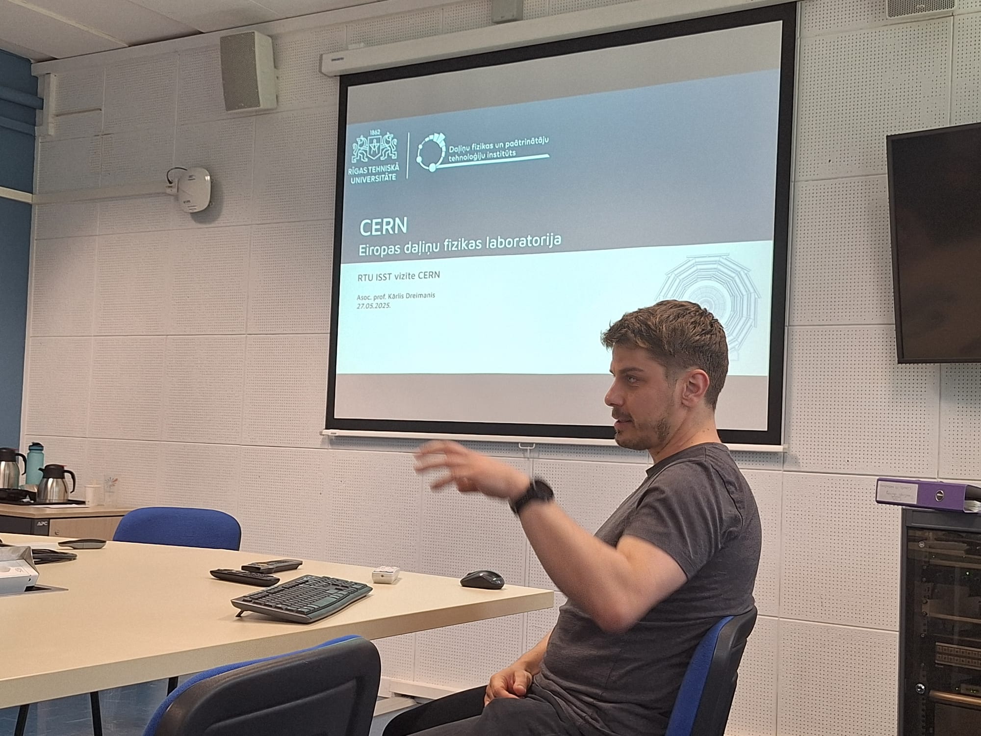 In the afternoon, we had a very special meeting with Latvian scientists and experts working at CERN. It was an inspiring moment to hear Kārlis Dreimanis, associate professor from RTU, explain how Latvia is part of the global mission of CERN. He told us about real work Latvians are doing in the CMS experiment, in research, and in data analysis. It made us feel proud and motivated — people from our own country are helping to understand the universe.