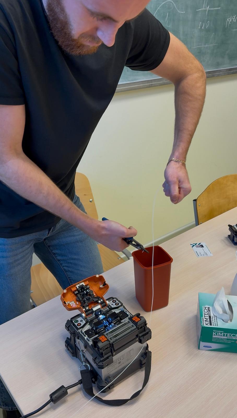 On our recent visit as journalists to Riga Technical University (RTU), we had the opportunity to explore three different laboratories, each contributing to the advancement of communication technology. Our visit included the Fiber Optic Transmission Systems Laboratory, where cutting-edge fiber optic research takes place together with Toms Salgals, a meeting with Elans Grabs, who is developing an independent 5G network, and a hands-on experience with optical fiber splicing.
