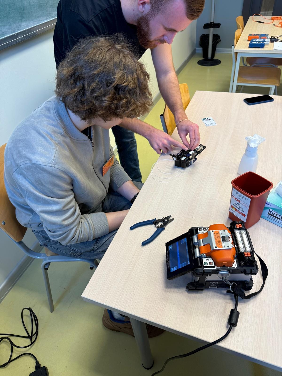 The final part of our visit gave us the chance to try fiber optic splicing firsthand. This process involves carefully aligning and fusing fiber optic cables to ensure seamless data transmission. The experience was both exciting and educational, as we used precision tools to connect the fibers. Fiber optic splicing is a crucial technique used in the installation and maintenance of high-speed networks, ensuring minimal signal loss and maximum efficiency. Getting hands-on with this process gave us a deeper appreciation for the precision and expertise required in fiber optic engineering.