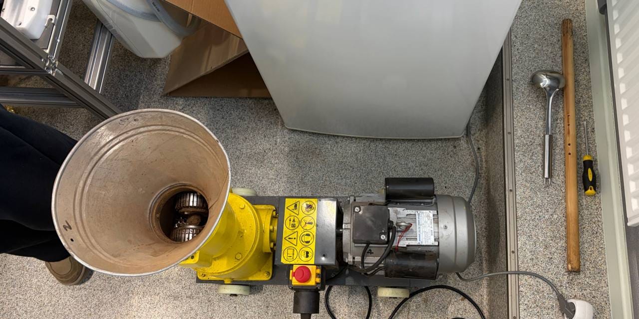 In another lab, we noticed a strong and strange smell. It came from an experiment making cat litter from waste for a startup company. The researchers were mixing materials with simple tools like sticks and ladles, showing that you do not always need expensive machines to do serious science.